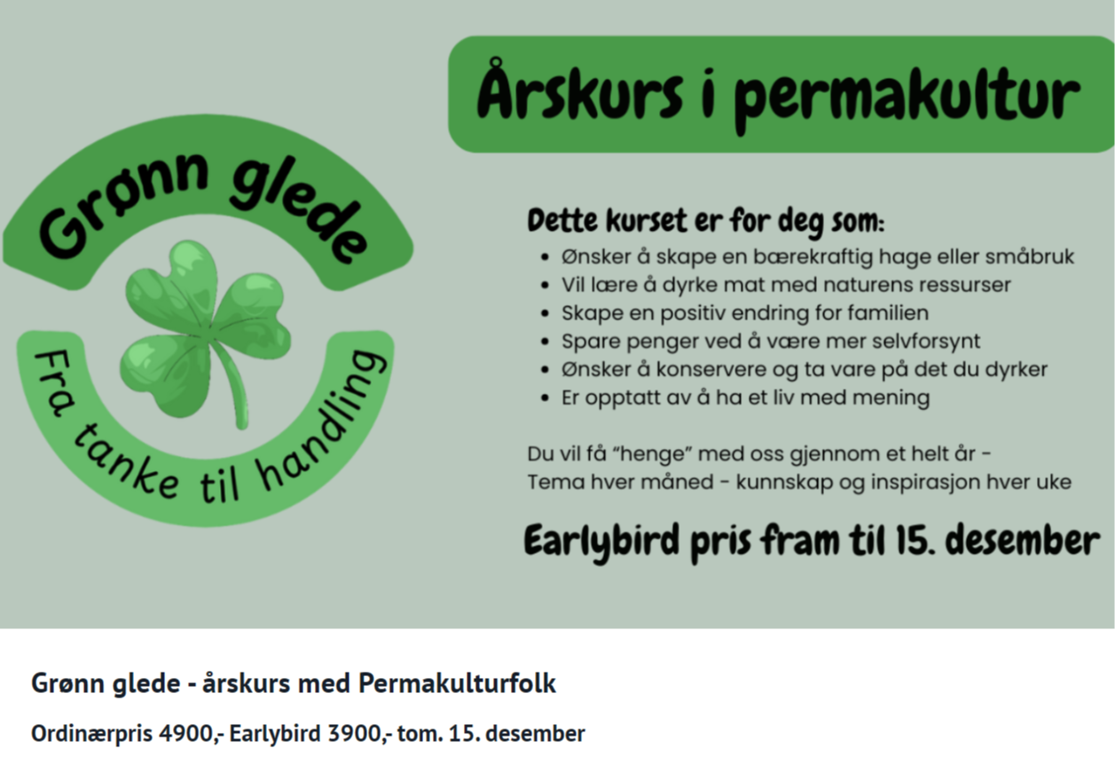 Nb! i morgen 15. desember er siste sjanse til Ä fÄ kurset GrÞnn glede - fra tanke til handling med 1000,- i rabatt.